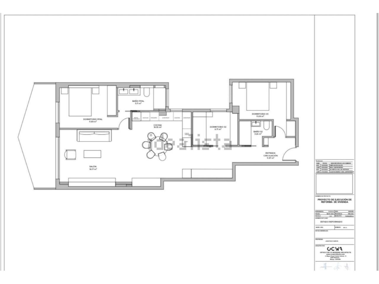 Consta de 3 dormitorios con armarios empotrados, 2 baños, salón con cocina totalmente amueblada, una terraza muy soleada de 16m2 aproximadamente y patio de luz.